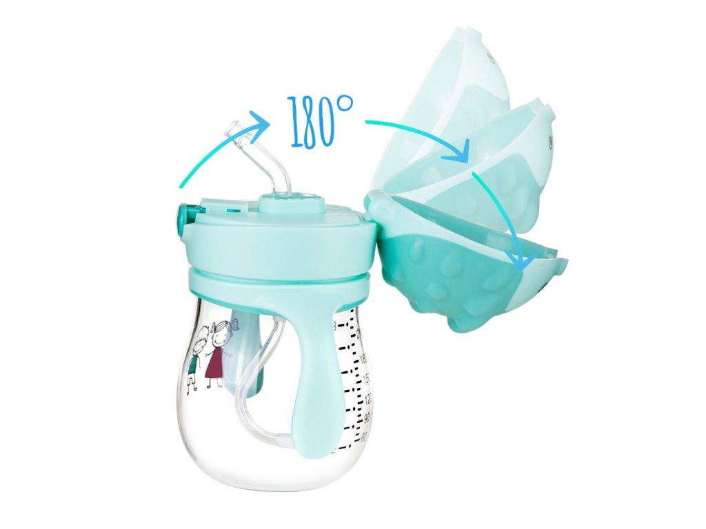 Fľaša na vodu so slamkou. Fľaša na vodu so silikónovou slamkou, ktorá umožňuje pitie zo všetkých uhlov. Vyrobené z moderného plastu - Tritan, úplne bez bisfenolu A (0% BPA). Táto technológia znamená, že fľaša na vodu nekreslí ani nezmení. Je veľmi odolný voči poškodeniu a vyzerá ako sklo. Dieťa pije do poslednej kvapky. Vaše batoľa môže piť naklonením pohára ešte hore nohami. Nahraditeľné doma a cestovanie. Tesné uzavretie zabraňuje pitiu a chráni slamku pred nečistotou. Pohodlné otvorenie stlačením tlačidla. Transparentnosť a jasná stupnica vám umožňujú riadiť množstvo tekutín. Hrnček je možné umyť v umývačke riadu na hornej poličke (ale bez slamy). Kapacita 250 ml *Tritan nemení chuť nápojov uložených v ňom. Nevyýva zápach, nevydáva žiadne škodlivé látky na jedlo. Pri výbere kontajnerov, ktoré sú z toho vyrobené, máme istotu ich bezpečnosti, ako aj vysokokvalitné skladovanie výrobkov. Nápoje a jedlo uložené v ňom zostávajú dlhé časy čerstvé a sú chránené negatívnym dopadom na časť životného prostredia vrátane UV žiarenia. A čo viac, Tritan neabsorbuje pachy a príchute, čo vytvára nádoby, ktoré sú vyrobené z nich, je oveľa príjemnejšia a hygiena. Dôležité: Aby sa fľaša s vodou pri pití nezatvorila, otvorte ju na maximálne 180 °, kým neklikne !!!
