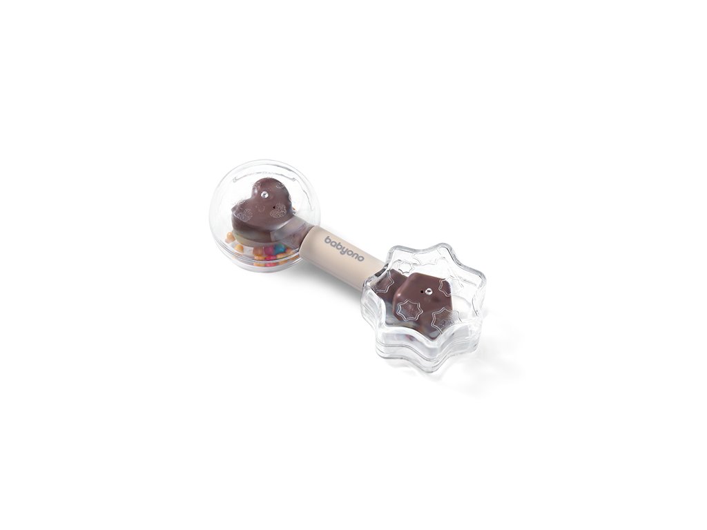 Po zatrasení hrkálka vydáva jemné zvuky, ktoré priťahujú pozornosť dieťaťa a rozvíjajú jeho sluch.