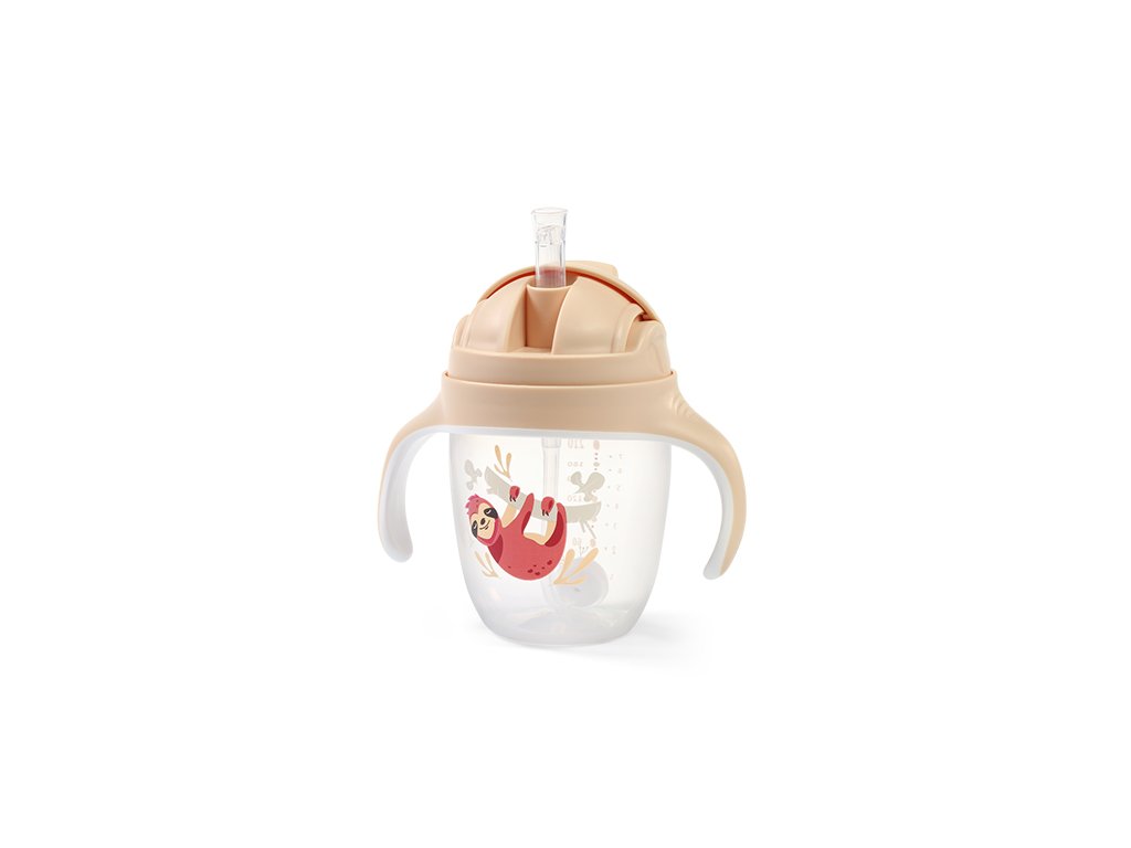 Pohár je vhodný na učenie sa piť samostatne. Slamka sa pohybuje spolu s tekutinou vo vnútri fľaše, vďaka čomu môže vaše dieťa piť v akomkoľvek uhle, dokonca aj v poloľahu, alebo keď je pohár otočený hore dnom.