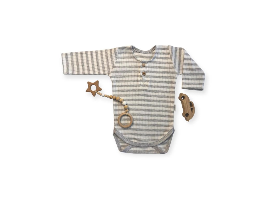 Praktické a pohodlné dojčenské body s dlhým rukávom vyrobené z mäkkej 100% bavlny šetrnej k detskej pokožke. Zapínanie na gombíky pri krku a patentky medzi nožičkami uľahčujú obliekanie aj prebaľovanie. Nadčasový dizajn a neutrálny odtieň robia z tohto kúsku ideálnu voľbu na každý deň.