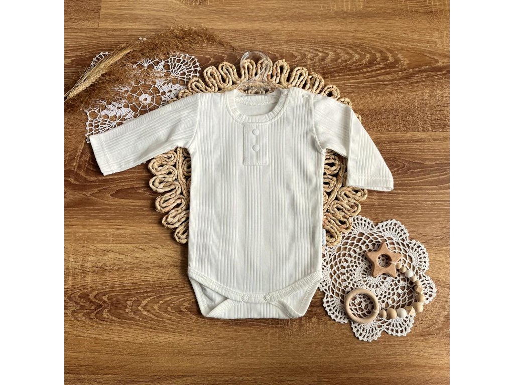 Toto jemné body je vyrobené zo 100 % organickej bavlny so štruktúrovaným povrchom, vďaka čomu je nielen príjemné na dotyk, ale aj vizuálne zaujímavé. Ozdobné gombíky vpredu dodávajú elegantný vzhľad, zatiaľ čo praktické zapínanie na ramene uľahčuje obliekanie bez zbytočného naťahovania cez hlavičku dieťaťa.