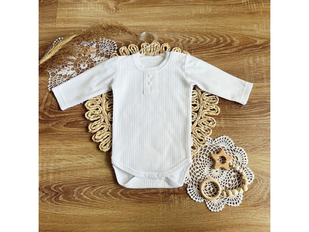 Toto jemné body je vyrobené zo 100 % organickej bavlny so štruktúrovaným povrchom, vďaka čomu je nielen príjemné na dotyk, ale aj vizuálne zaujímavé. Ozdobné gombíky vpredu dodávajú elegantný vzhľad, zatiaľ čo praktické zapínanie na ramene uľahčuje obliekanie bez zbytočného naťahovania cez hlavičku dieťaťa.