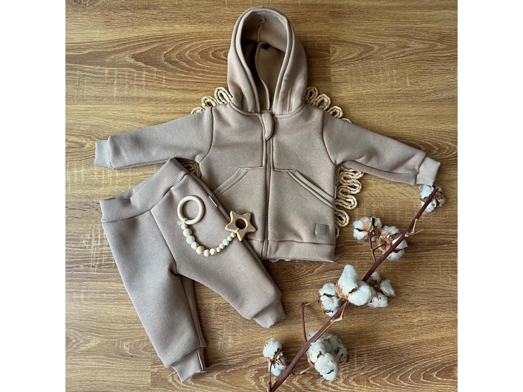 Detská 2-dielna tepláková súprava s kapucňou - Béžová