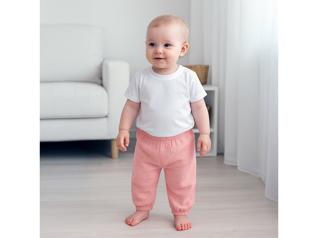 Štýlová a praktická 2-dielna detská súprava New Baby Kindergarten. Súpravička sa skladá z bavlneného trička s krátkym rukávom a mušelínových nohavíc. Veľmi praktický set pre deti aj do škôlky. Bavlnené tričko je veľmi pohodlné už len tým, že je vyrobené z kvalitnej bavlny, bez zapínania, s jemným lemom okolo krčku. Lem nesmie tlačiť, obopínať a tričko sa musí ľahko obliekať cez hlavičku. Mušelínové detské jednofarebné nohavice s moderným dizajnom sú ušité z kvalitného mušelínu. Pre veľmi ľahké obliekanie majú praktický voľný strih, v páse a na nohavičkách je gumička, ktorá netlačí. Nohavice sú veľmi vhodné aj na bežné detské činnosti. Zloženie: 100% bavlna. OEKO-TEX STANDARD 100. Mušelín je jedna z najčistejších, najjednoduchších a najjemnejších tkanín na svete. Je to tkaný priedušný materiál, ktorý si zamilovali deti aj rodičia po celom svete. Mušelín je veľmi odolný a to tak, že bez problémov zvláda opakované pranie. Rozmerová tabuľka-posledná foto.Dodatočné parametre