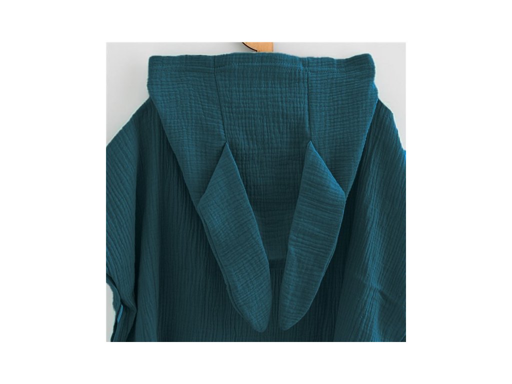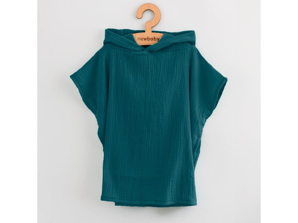 Detské mušelínové pončo New Baby Feeling. Štýlové pončo nielen na doma, ale aj na plávanie pri bazéniku, alebo pri vode. Mušelínové pončo je vďaka materiálu ľahké, vzdušné a krásne savé. Pončo bude chrániť dieťa pred chladom a poslúži aj ako jemná osuška. Vďaka voľnému jedinečnému strihu a roztomilým uškám urobí deťom veľkú radosť. Svojim strihom s dieťatkom porastie a padne na každú postavu. Vyzerá skvele a je možné využívať po celý rok. Pre ľahšie obliekanie a vyzliekanie sú na boku cvočky. Tým vznikne možnosť urobiť otvor na ruku, alebo nechať strih volný. Zloženie: mušelín-100% bavlna. Rozmer: 35 cm bez kapucne, šírka: 40 cm. OEKO-TEX STANDARD 100.