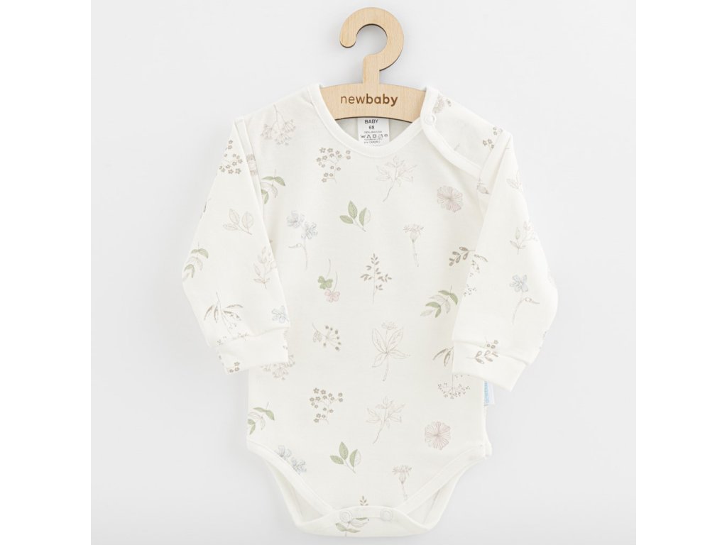 Originálne a nápadité bavlnené dojčenské body s dlhým rukávom New Baby z kolekcie Zoe. Body zdobí potlač kvetiniek. Veľmi príjemný, mäkký a kvalitný materiál, ktorý je vhodný pre bábätká. Zapínanie na cvočky na ramienku a medzi nožičkami uľahčí obliekanie a prebaľovanie. Zloženie: 100% bavlna.Dodatočné parametre
