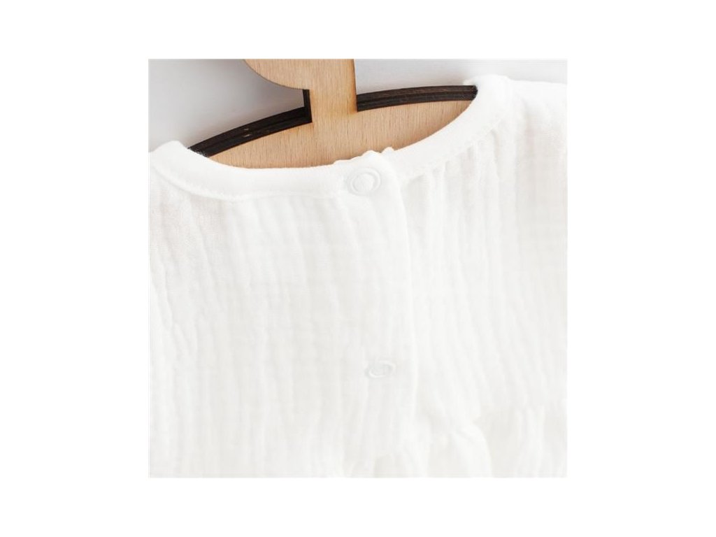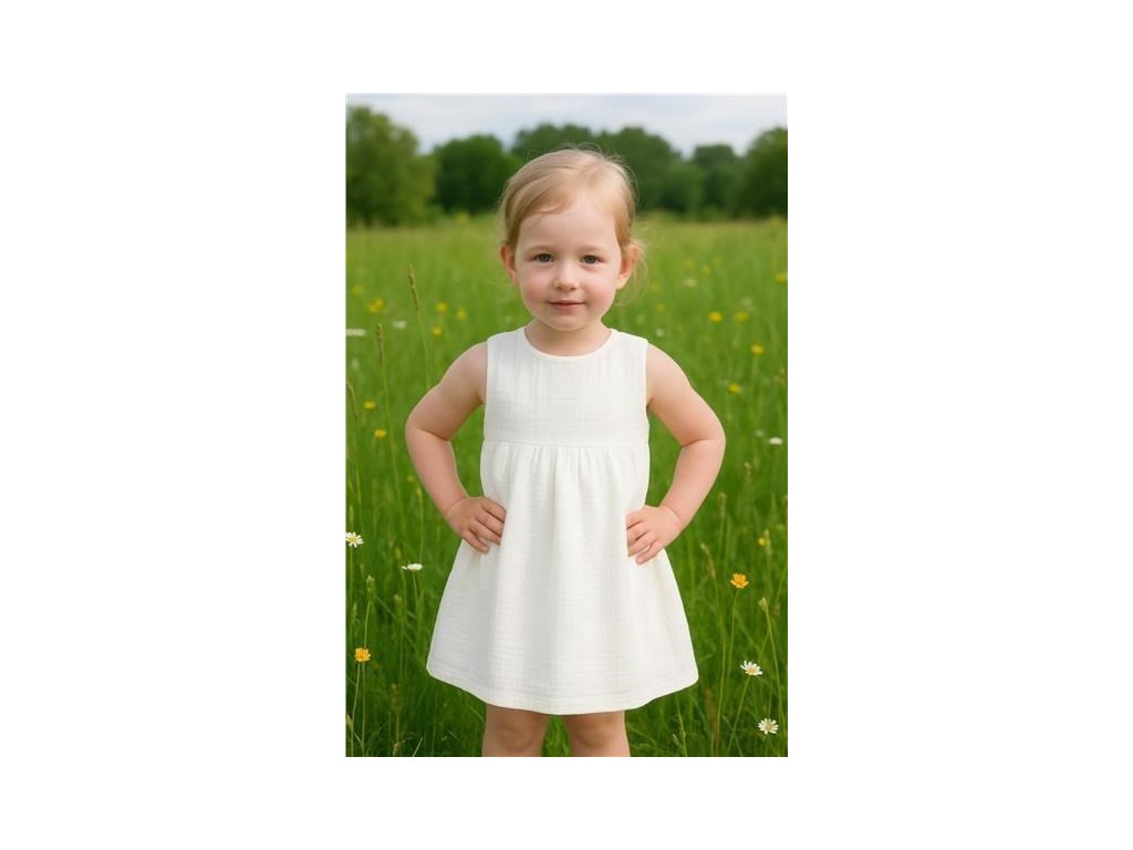 Módne mušelínové dojčenské šatôčky New Baby Elizabeth pre všetky malé parádnice. Šatôčky sú bez rukávov ušité v tvare písmena A. Spodná časť má krásne nariasenú sukienku. Zapínanie na cvoček na zadnej strane uľahčí obliekanie. Šaty majú veľmi príjemnučký, mäkučký a kvalitný materiál, ktorý je vhodný pre bábätká. Sú ľahučké a veľmi príjemné pri nosení. Pre New Baby je veľmi dôležitá spokojnosť zákaznika a práve preto vám ponúkame naše kvalitné letné mušelínové šatôčky. Zloženie: 100% bavlna. Mušelín je jedna z najčistejších, najjednoduchších a najjemnejších tkanín na svete. Jemne tkaný priedušný materiál je tak dokonalý, že si ho zamilujú deti po celom svete. Ľahká štruktúra umožňuje mušelínu "dýchať" a zaisťuje dostatočnú cirkuláciu vzduchu, čím znižuje riziko prehriatia. Táto vlastnosť pomáha udržať Vaše dieťa v pohodlí, bezpečí a rodičov v pokoji. Mušelín je veľmi odolný a to tak, že bez problémov zvláda opakované pranie a postupom času je ľahší a jemnejší.Dodatočné parametre