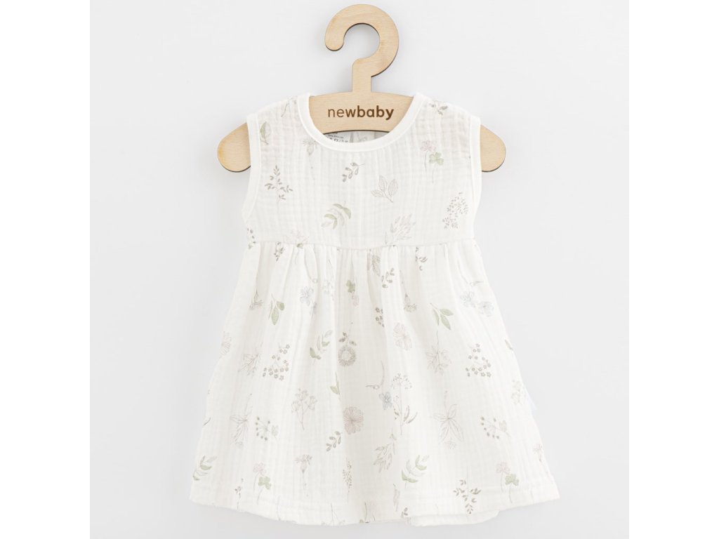 Módne mušelínové dojčenské šatôčky New Baby Zoe pre všetky malé parádnice. Šatôčky sú bez rukávov ušité v tvare písmena A. Spodná časť má krásne nariasenú sukienku. Zapínanie na cvoček na zadnej strane uľahčí obliekanie. Šaty majú veľmi príjemnučký, mäkučký a kvalitný materiál, ktorý je vhodný pre bábätká. Sú ľahučké a veľmi príjemné pri nosení. Pre New Baby je veľmi dôležitá spokojnosť zákaznika a práve preto vám ponúkame naše kvalitné letné mušelínové šatôčky. Zloženie: 100% bavlna. Mušelín je jedna z najčistejších, najjednoduchších a najjemnejších tkanín na svete. Jemne tkaný priedušný materiál je tak dokonalý, že si ho zamilujú deti po celom svete. Ľahká štruktúra umožňuje mušelínu "dýchať" a zaisťuje dostatočnú cirkuláciu vzduchu, čím znižuje riziko prehriatia. Táto vlastnosť pomáha udržať Vaše dieťa v pohodlí, bezpečí a rodičov v pokoji. Mušelín je veľmi odolný a to tak, že bez problémov zvláda opakované pranie a postupom času je ľahší a jemnejší.Dodatočné parametre