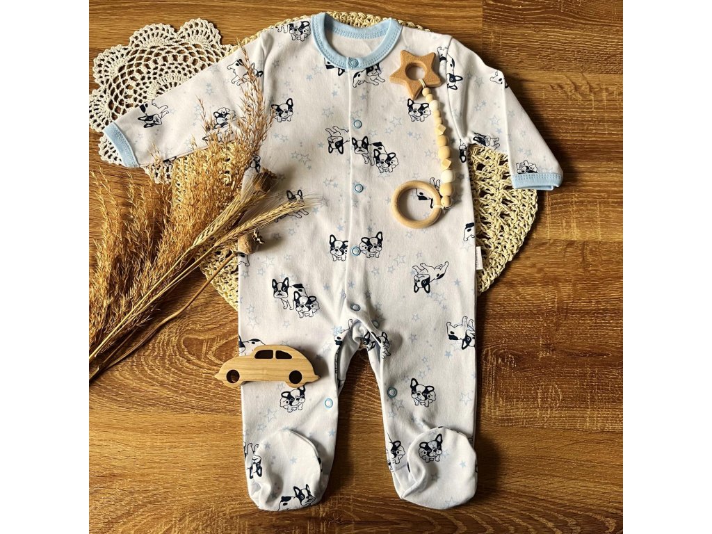 Roztomilý dojčenský overal si zamilujete na prvý pohľad. Je vyrobený z kvalitnej 100% bavlny, ktorá je jemná k citlivej detskej pokožke a zároveň príjemne priedušná. Overal má praktické zapínanie na cvočky po celej dĺžke, čo uľahčuje obliekanie a prebaľovanie. Integrované nožičky udržia bábätko v teple a pohodlí počas celého dňa i noci.