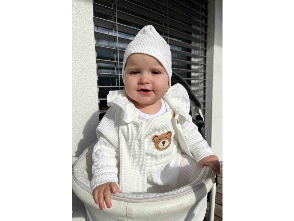 Elegantný dojčenský kabátik-svetrík New Baby Laura. Dievčenský kabátik s krásným límčekom má praktické zapínanie na gombíky. Krásne drevené gombíky dodajú kabátiku elegantný vzhľad. Vďaka vzoru a vzhľadu kabátik hravo nahradí svetrík vo výbavičke dievčatiek. Je vyrobený z vysokokvalitného materiálu. Vhodný na celoročné nosenie na každý deň i príležitosť. Zloženie: 100% bavlna.Dodatočné parametre