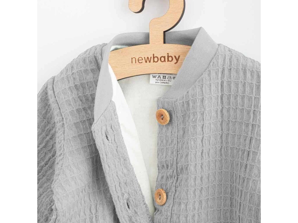 Štýlový a praktický mušelínový detský kabátik New Baby Comfort clothes s moderným dizajnom. Podšitý kabátik bavlnenou podšívkou je ušitý z príjemného hrubšieho mušelínu, ktorý oceníte ako na bežné nosenie, tak aj na rôzne príležitosti, vďaka veľmi zaujímavej štruktúre materiálu. Zapínanie po celej dĺžke na gombíky. Kabátik skvele nahradí aj svetrík do kočíka, alebo na prechádzky. Mušelín je jedna z najčistejších, najjednoduchších a najjemnejších tkanín na svete. Je to tkaný priedušný materiál, ktorý si zamilovali deti aj rodičia po celom svete. Mušelín je veľmi odolný a to tak, že bez problémov zvláda opakované pranie. Zloženie: 100% bavlna. Podšívka: 100% bavlna. Kolekcia Comfort clothes, je vyrobená z hrubšieho mušelínu, ktorý je vhodný na jarné, jesenné alebo chladnejšie dni.Dodatočné parametre