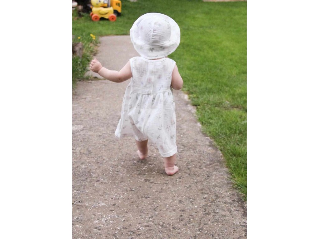 Krásny a praktický mušelínový klobúčik pre bábätká New Baby Zoe. Klobúčik je určený pre bábätká a malé deti, ktoré potrebujú ochranu pred slnkom. Zaväzuje sa pomocou šnúrok. Zaväzovanie je pohodlné, takže sa nemusíte báť, že by sa klobúčik mohol ľahko stiahnuť alebo spadnúť. Dieťatko bude vyzerať roztomilo a zároveň bude chránené pred slnečnými lúčmi. Mušelín je jedna z najčistejších, najjednoduchších a najjemnejších tkanín na svete. Jemne tkaný priedušný materiál je tak dokonalý, že si ho zamilujú deti po celom svete. Ľahká štruktúra umožňuje mušelínu "dýchať" a zaisťuje dostatočnú cirkuláciu vzduchu, čím znižuje riziko prehriatia. Táto vlastnosť pomáha udržať Vaše dieťa v pohodlí, bezpečí a rodičov v pokoji. Mušelín je veľmi odolný a to tak, že bez problémov zvláda opakované pranie a postupom času je ľahší a jemnejší. Zloženie: 100% bavlna.Dodatočné parametre