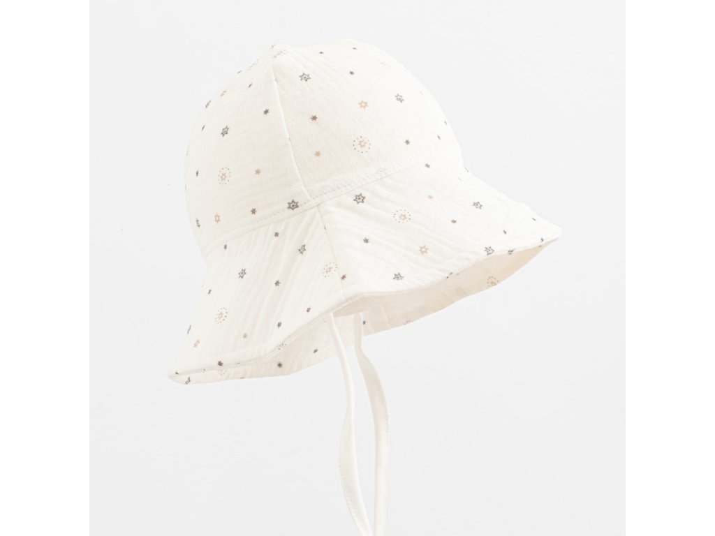 Krásny a praktický mušelínový klobúčik pre bábätká New Baby Zora. Klobúčik je určený pre bábätká a malé deti, ktoré potrebujú ochranu pred slnkom. Zaväzuje sa pomocou šnúrok. Zaväzovanie je pohodlné, takže sa nemusíte báť, že by sa klobúčik mohol ľahko stiahnuť alebo spadnúť. Dieťatko bude vyzerať roztomilo a zároveň bude chránené pred slnečnými lúčmi. Mušelín je jedna z najčistejších, najjednoduchších a najjemnejších tkanín na svete. Jemne tkaný priedušný materiál je tak dokonalý, že si ho zamilujú deti po celom svete. Ľahká štruktúra umožňuje mušelínu "dýchať" a zaisťuje dostatočnú cirkuláciu vzduchu, čím znižuje riziko prehriatia. Táto vlastnosť pomáha udržať Vaše dieťa v pohodlí, bezpečí a rodičov v pokoji. Mušelín je veľmi odolný a to tak, že bez problémov zvláda opakované pranie a postupom času je ľahší a jemnejší. Zloženie: 100% bavlna.Dodatočné parametre
