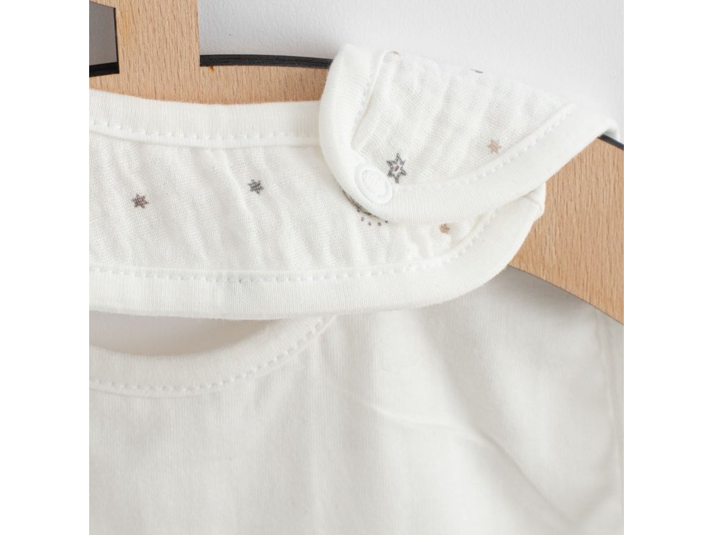 Krásny mušelínový detský podbradník New Baby Arthur. Podbradník je možné zapnúť do 2 veľkostí pomocou cvočkov. Mušelín je jedna z najčistejších, najjednoduchších a najjemnejších tkanín na svete. Jemne tkaný priedušný materiál je taký dokonalý, že si ho zamilujú deti po celom svete. Ľahká štruktúra umožňuje mušelínu „dýchať“ a zaisťuje dostatočnú cirkuláciu vzduchu, čím znižuje riziko prehriatia. Táto vlastnosť pomáha udržať Vaše dieťa v pohodlí, bezpečí a rodiča v pokoji. Mušelín je veľmi odolný a to tak, že bez problémov zvláda opakované pranie a postupom času je ľahší a jemnejší. Rozmer: 25x30 cm. Zloženie: 100% bavlna.Dodatočné parametre