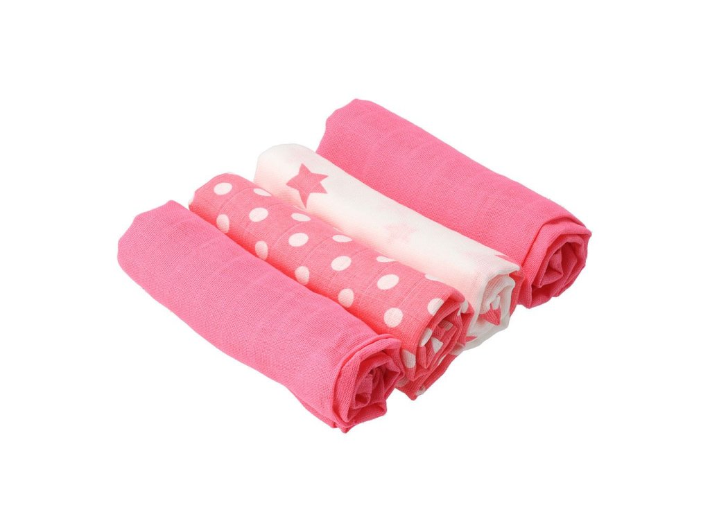 Látkové bavlnené plienky New Baby Softy s potiskom 70 x 70 cm 4 ks ružovo-biele None
