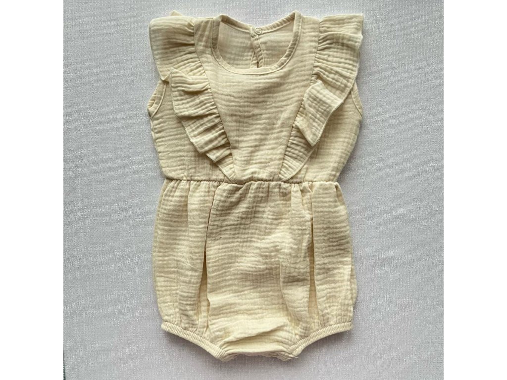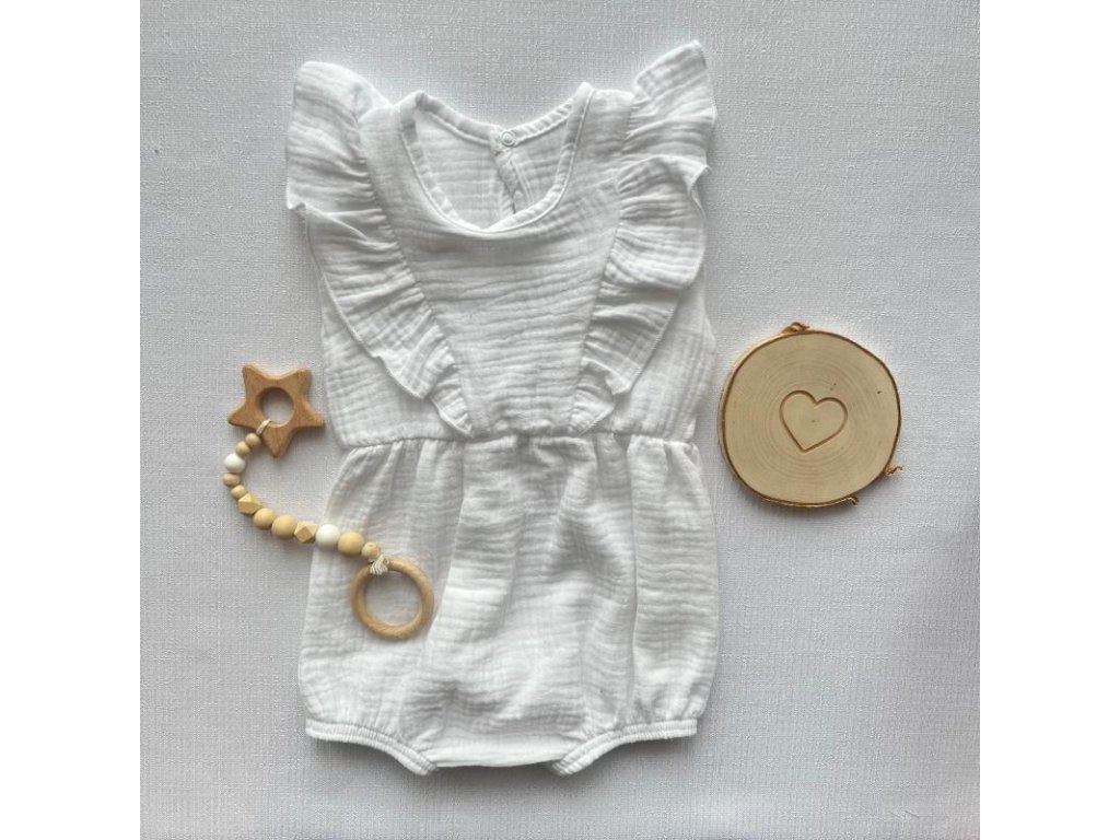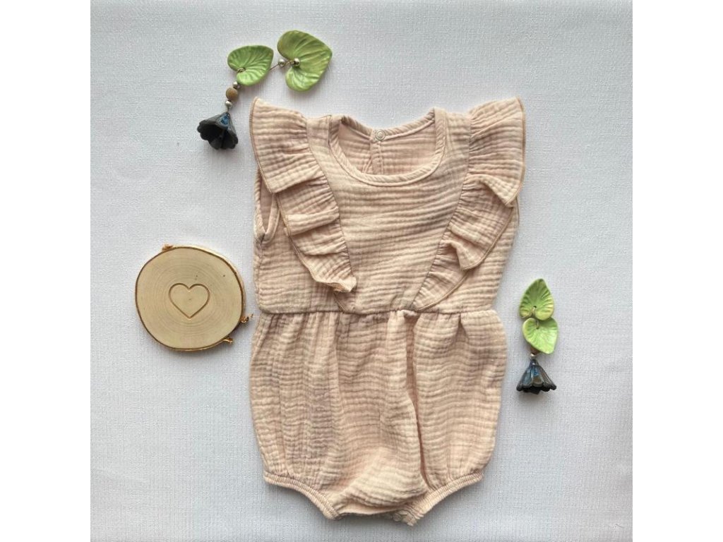 Tento nežný ramper je stelesnením pohodlia a dievčenského šarmu. Ušitý z jemného dvojvrstvového mušelínu v jemných odtieňoch, ponúka dokonalú kombináciu ľahkosti, priedušnosti a štýlu. Vďaka voľnému strihu a elastickým lemom pri nožičkách sa pohodlne nosí celý deň – či už na letnej prechádzke, pri hre, alebo počas spánku.