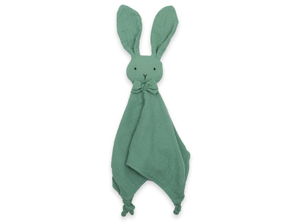 Mušelínový usínáčik New Baby Rabbit je to ideálna plyšová hračka pre naše dieťa od prvých dní života. Vyrobená z mäkkej a na dotyk príjemnej mušelínovej tkaniny. Poskytuje pocit bezpečia a uľahčuje zaspávanie. Mäkký vzhľad a estetické farby zabezpečujú estetický a minimalistický dizajn. Plyšová hračka sa dokonale hodí k našim ostatným mušelínovým výrobkom a vytvára krásnu súpravu, ktorú možno darovať ako darček na oslavu narodenia dieťaťa.
