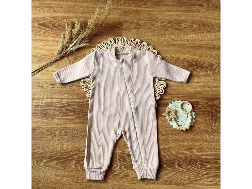 Overal s dlhým rukávom na zips - EkoBaby - Béžová