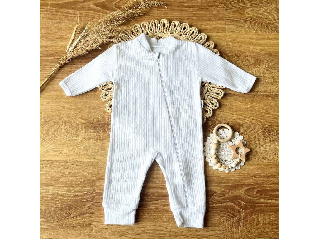 Overal s dlhým rukávom na zips - EkoBaby - Biela