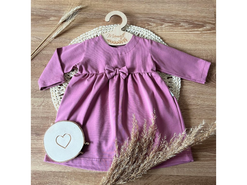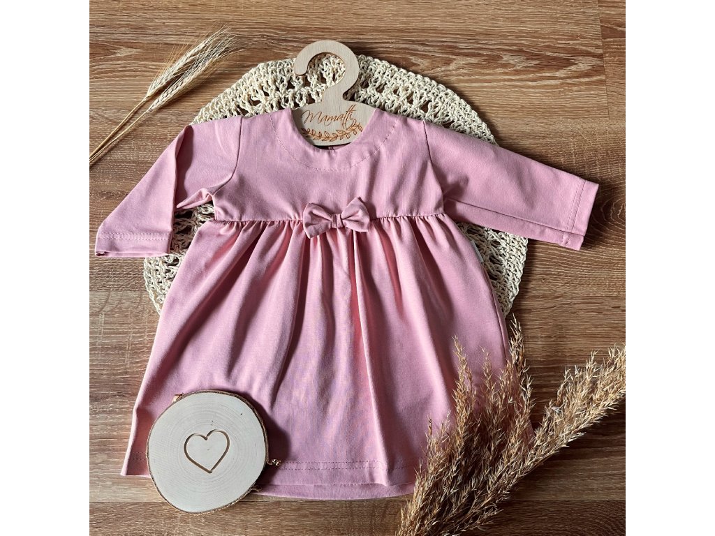 Tieto jemné ružové šaty s dlhým rukávom a roztomilou mašličkou v páse sú ideálne na každú príležitosť – od rodinnej návštevy po fotenie s úsmevom.