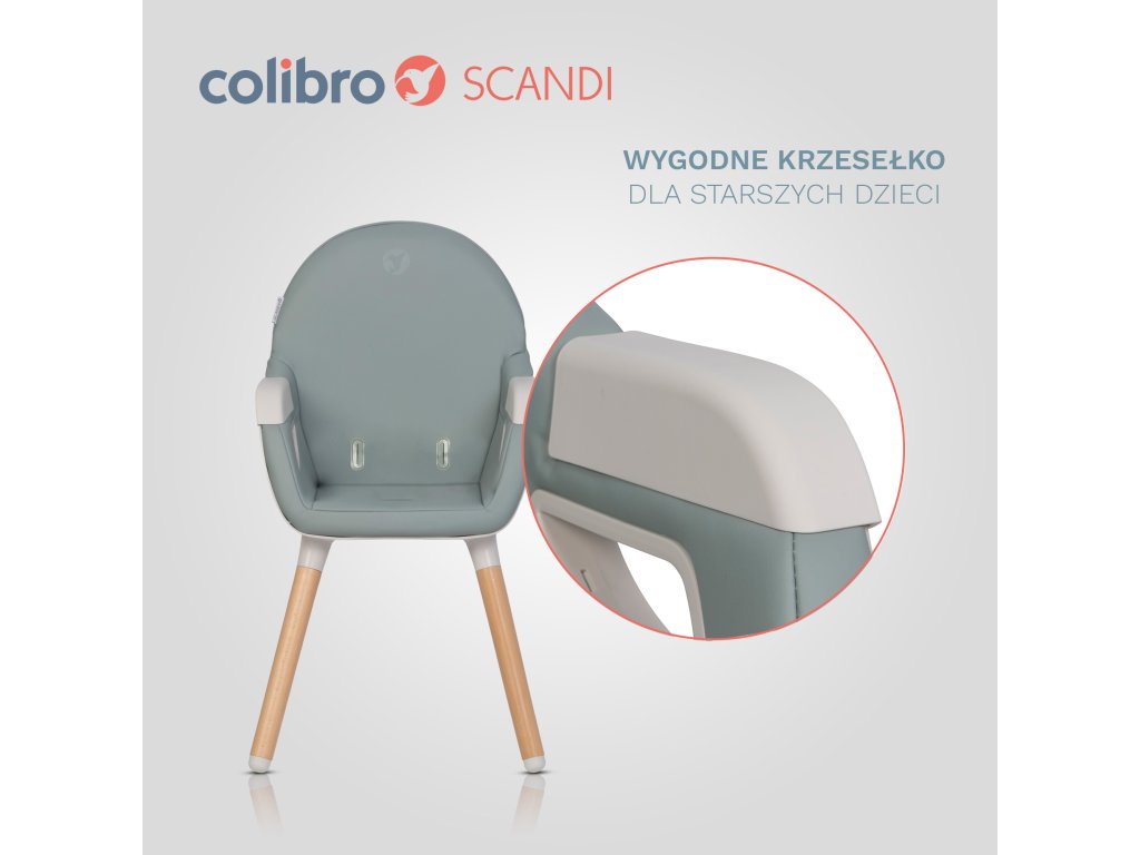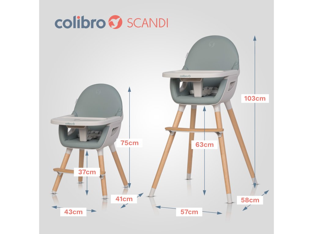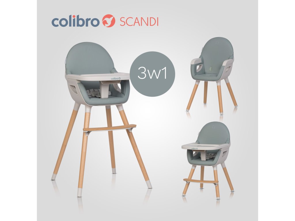 Stolička na kŕmenie 3v1 SCANDI od COLIBRO sa vyznačuje moderným škandinávskym tvarom. Sedadlo je kombinované s nohami z prírodného dreva. Farby zahŕňajú 4 módne kombinácie, ktoré určite dokonale zapadnú do dekorácie modernej kuchyne a jedálne.