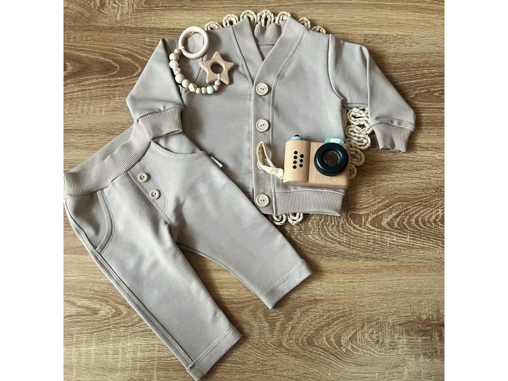 Štýlový dvojdielny set pre malých fešákov – kardigan na gombíky a mäkké nohavice s elastickým pásom. Minimalistický vzhľad v kombinácii s pohodlím, ktoré ocenia deti aj rodičia.