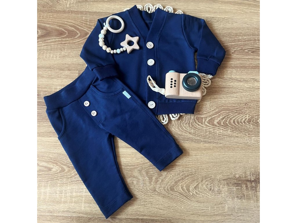 Súprava kardigán & nohavice s gombíkmi - Tmavomodrá