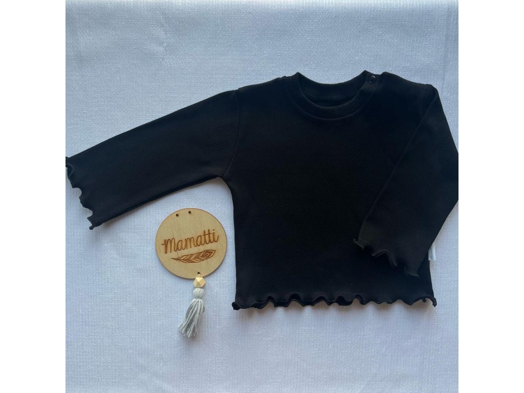 Tričko s dlhým rukávom – rebrované – pre dievča - Čierna