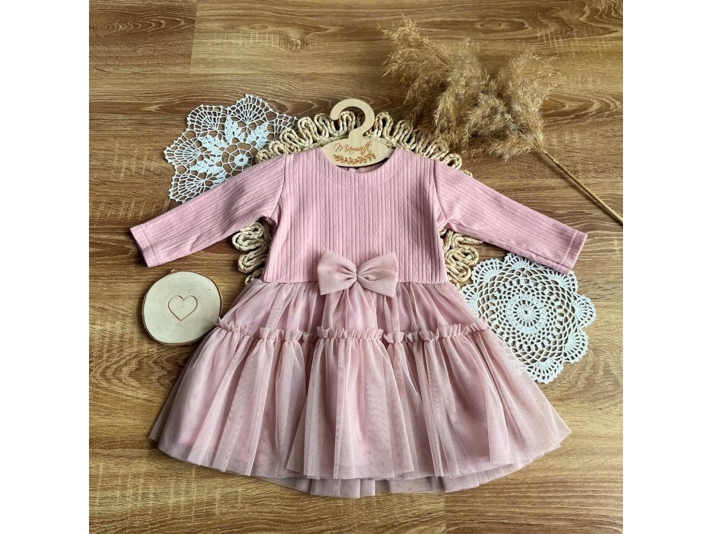 Tylové šaty Eko Baby- dlhý rukáv - Špinavá ružová